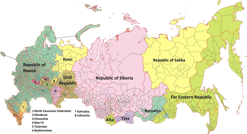 «…В этой ситуации российской политической верхушке следует понять, что для России задачей первостепенной важности является модернизация собственного общества, а не тщетные попытки вернуть былой статус мировой державы. …России, устроенной по принципу свободной конфедерации, в которую вошли бы Европейская часть России, Сибирская республика и Дальневосточная республика, было бы легче развивать более тесные экономические связи с Европой, с новыми государствами Центральной Азии и с Востоком, что тем самым ускорило бы развитие самой России. Каждый из этих трех членов конфедерации имел бы более широкие возможности для использования местного творческого потенциала, на протяжении веков подавлявшегося тяжелой рукой московской бюрократии». (20)