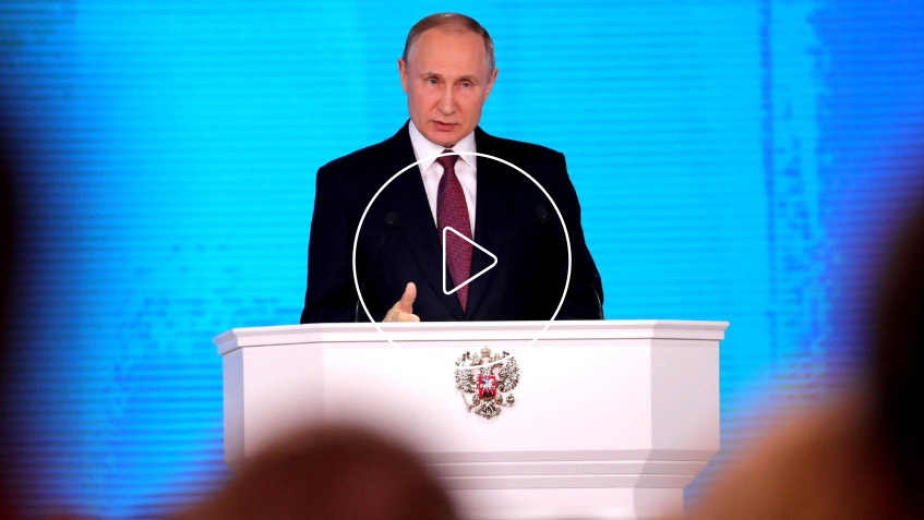 54. Видео. В.Путин. Послание Федеральному Собранию 1 марта 2018г. Раздел «Оборона». Время - 1.13.00